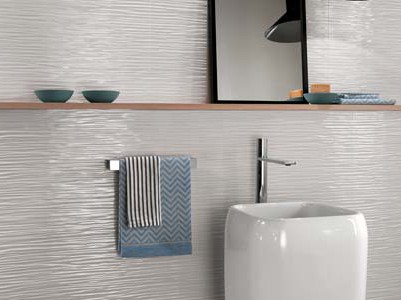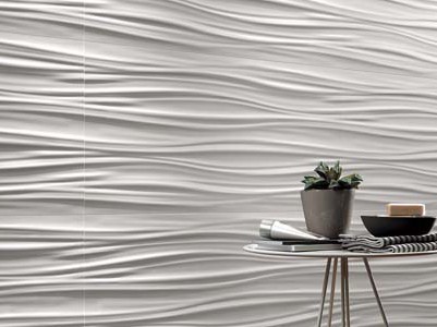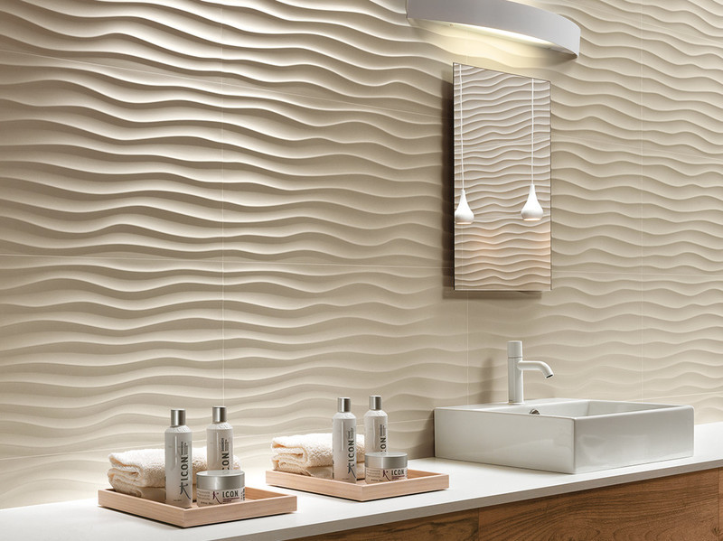 Elegante Strukturfliesen mit Wellenstruktur oder grafischen Mustern schaffen ein harmonisches Raumgefühl